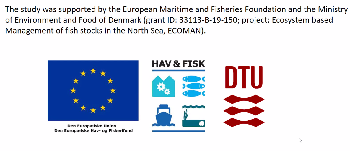 The SAM model is used by the ICES Working Group on Multispecies Assessment Method, WGSAM (ICES, 2021) to estimate the historical natural mortalities, which are used in the ICES stock assessment and TAC advice for number of species in the North Sea area. The model is a so-called multispecies model, which uses historical catches. catch rates from scientific surveys and the observed stomach content from a quarter of a million fish to estimate the historical fishing mortality (F) and stock sizes. The model takes account for predation, which results in the so-called predation mortality (M2).